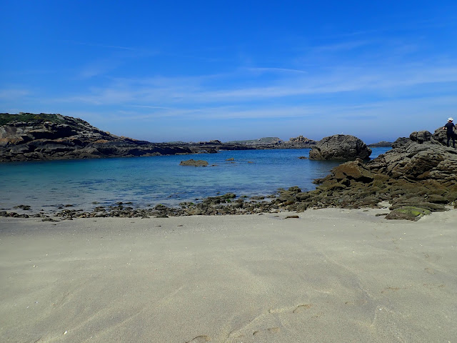 . Heureusement nous avons eu l'info que cette anse se vide complètement a marée basse. Direction la plage du tertre pelé de l'autre coté de la pointe pour récupérer notre chauffeur.
